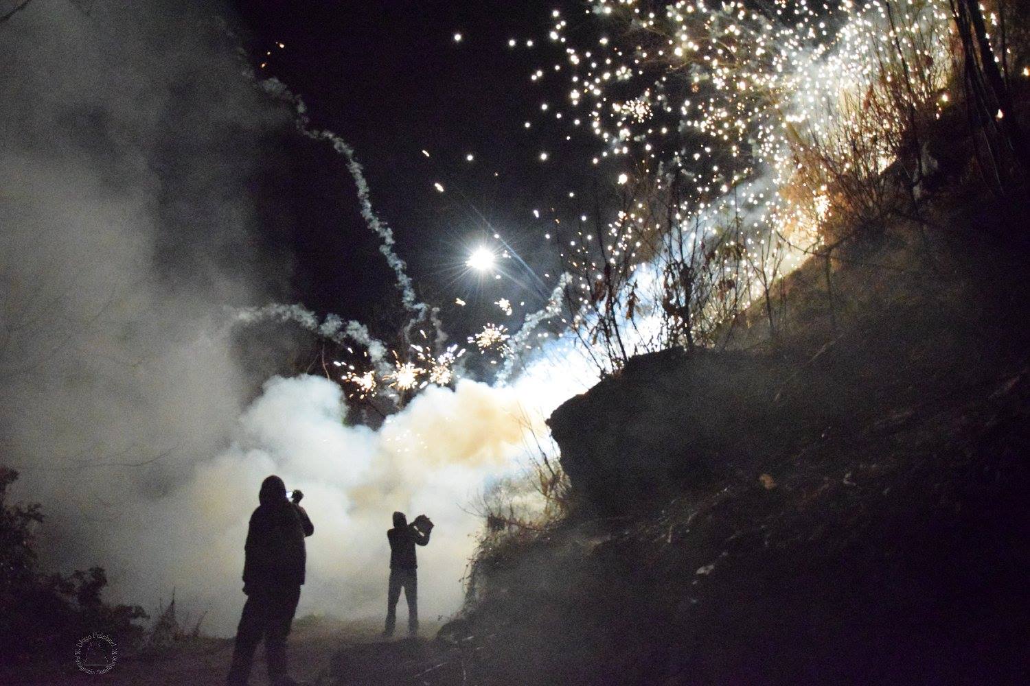 Approfittando delle giornate di vacanza si è potuto raggiungere dunque un ottimo risultato con uno sforzo ridotto, obbligando le truppe a difesa del cantiere in fastidiosi e inefficaci continui turni. Le forze di polizia, come di consuetudine nell’ultimo anno su mandato della prefettura e della questura torinese, avevano bloccato la strada che conduce da Giaglione alla val Clarea all’altezza dell’imbocco dei sentieri. Blocchi che si sono poi rivelati inutili vista la capacità dei No Tav di trovare sempre nuove strade verso il cantiere. Sono stati dunque portate pressioni e attacchi alle reti durante tutte le giornate, con lanci di fuochi artificiali e battiture. Solo in valsusa sono costretti a stare decine di ore nei boschi illuminati dalle loro torri faro.