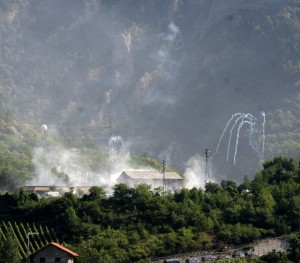 La mattina del 27 giugno del 2011, con tutta la forza a disposizione l’attacco venne dispiegato da più fronti con ruspe, uomini e tanti, veramente tanti, lacrimogeni. Assaggiammo il concetto del “lavoro” del cantiere con le ruspe e le pinze che abbatterono le barricate (Goodbye Stalingrado) e respirammo il gas CS che intossicò una parte della montagna.