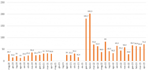 I picchi del Gennaio e Febbraio 2022 risultano evidenti, ma i dati delle medie dei mesi successivi sono comunque sovente superiori ai limiti di legge e alle soglie stabilite da Sitaf, per non parlare di quelle dell’OMS.