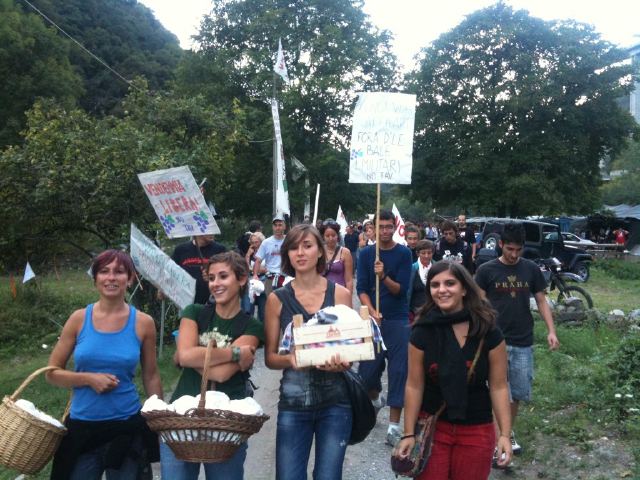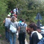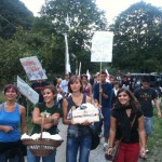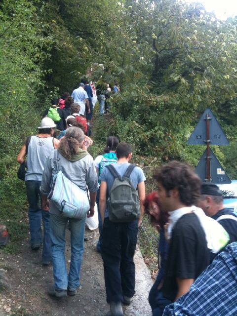 E’terminata da poco la terza passeggiata all’interno del fortino della Maddalena organizzata dal movimento. Nell’ambito della 5 giorni metro per metro, alle 17.30 dalla Centrale è partito il corteo per fare la merenda Sinoira nelle vigne dell’Avanà con l’intento dichiarato di entrare nel fortino, ancora una volta dalle vigne per denunciare l’insopportabile militarizzazione che sta tenendo da mesi le vigne ostaggio del fortino si tav. Da ormai tre mesi il solo piazzamento delle recinzioni ha di fatto massacrato la microeconomia locale legata al territorio di Chiomonte impedendo l’accesso ai contadini e alle famiglie e ponendo delle serie ipoteche sul futuro raccolto. Per la terza volta abbiamo rotto questo blocco in massa marciando sull’Avanà verso la Maddalena. Questa volta abbiamo colto un risultato ulteriore in questa campagna, arrivando fino a ridosso del piazzale della Maddalena, ripercorrendo la mulattiera che portava alla Libera Repubblica, e facendo la merenda sinoira nell’area in cui avevamo allestito il palco concerti. Terminata la merenda il corteo è ridisceso al bed and breakfast osacolando la via dell’avanà alle forze dell’ordine con delle balle di fieno, per riprendere i sentieri e tornare alla centrale.