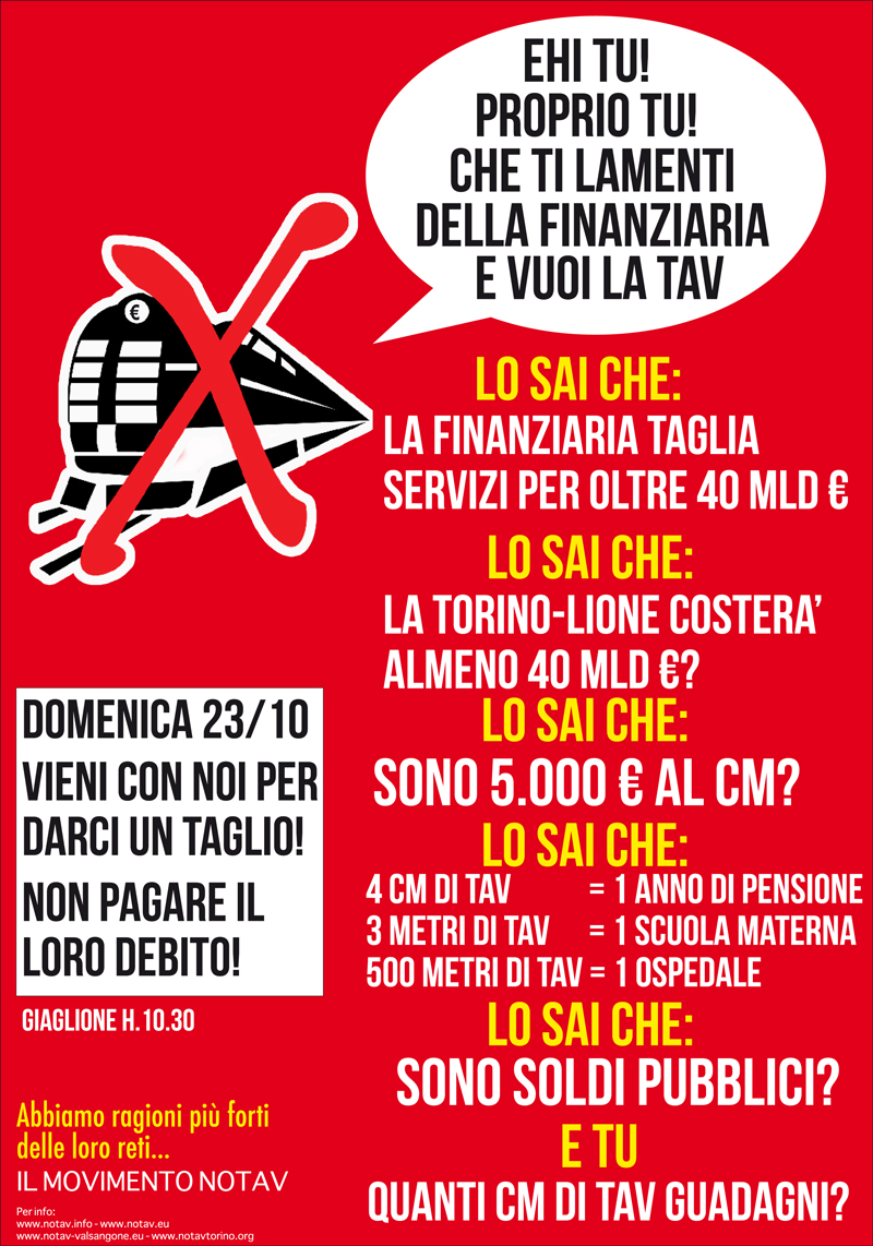 Ma ci piacerebbe dire a tutti perchè abbiamo deciso di darci un taglio. Non solo perchè riteniamo quel cantiere illeggittimo ed abusivo, ma perchè quelle reti sono il simbolo di come la casta intende la democrazia in questo Paese. Non leggiamo mai abbastanza sui quotidiani il concetto chiaro che la Torino Lione è un opera inutile finanziata esclusivaemnte dai soldi pubblici, i nostri.