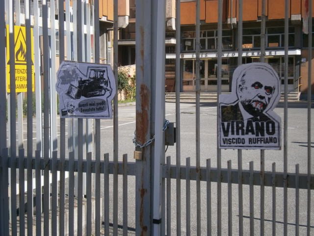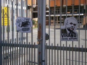 Questa mattina all’I.T.I.S di Susa si doveva svolgere l’assemblea sul Tav con Virano organizzata dal preside della scuola. Fin dalle prime ore del mattino come studenti ci siamo trovati davanti ai cancelli dell’istituto per bloccarne l’eventuale arrivo. La giornata di moblitazione è iniziata con l’arrivo dei Vigili del fuoco chiamati dai carabinieri per rimouvore i lucchetti posti ai cancelli dell’istituto dagli studenti. Nonostante l’azione dei vigili del fuoco , gli studenti hanno comunque deciso di chiudere la scuola, la quale oggi risultava deserta. Dopo aver bloccato l’istituto e avuto conferma del fatto che Virano non si presentasse, al di fuori della scuola iniziava un’assemblea dibattito organizzata dagli stessi studenti con la presenza di un tecnico del movimento No Tav, il dibattito è stato fin da subito ben accolto dagli studenti. Terminato il dibattio il presidio è poi continuato per tutta la mattinata. Ad un certo punto il preside uscito fuori dall’istituto per domandare cosa stesse accadendo, veniva contestato dagli studenti che ribadivano il fatto di non accettare un’essere come Virano a scuola e nemmeno in valle . Ricordiamo che Mario Virano è uno degli esecutori della distruzione della nostra valle e per noi studenti anche della distruzione del nostro futuro . Il preside ha ancora una volta “promesso” di organizzare un dibattito coi pro e i contro dell’opera. Ma noi studenti oggi più che mai determinati vogliamo ribadire che non accettiamo nessuno tipo di confronto con una persona come Virano. Siamo pronti oggi,domani,dopo domani a ostacolare la presenza di Virano in valle.. Nelle nostre scuole vogliamo decidere noi l’informazione non accettiamo che prendano iniziative senza il nostro consenso!FUORI VIRANO DALLE SCUOLE.FUORI VIRANO DALLA VALLE.