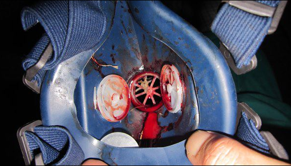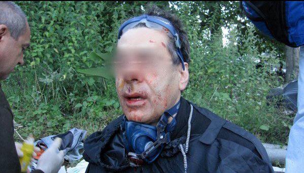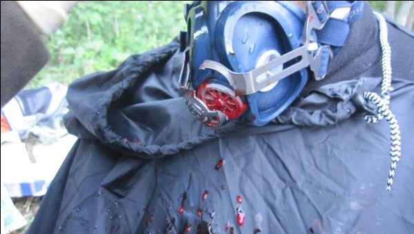 Ecco il risultato degli “eroi” di Maroni prodotto sparando in faccia a poca distanza grossi lacrimogeni: fratture naso e mandibola, lacerazioni interne a palato e gengiva, maschera antigas dilaniata. E se non avesse avuto la maschera? GUARDA IL VIDEO E LE FOTO
