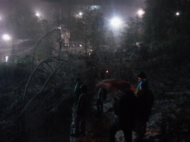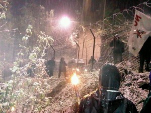 Dobbiamo dire che un’altra serata storica si è consumata da poco in Valle di Susa. A poche ore dagli espropri la pioggia si è trasformata in neve, le gocce in fiocchi consistenti, ma i notav hanno marciato in un migliaio fino alle recinzioni del cantiere. Dalla mezzanotte scattava l’ennesima ordinanza prefettizia che vieta la circolazione da Giaglione alla Clarea e proprio per questo, dopo un’assemblea velocissima, tutto il popolo notav riunito nel piazzale di Genio, ha acceso le fiaccole ed è partito in marcia per dimostrare che le ordinanze da queste parti non fanno apura, così come i divieti, il filo spinato e le truppe di ogni reggimento.