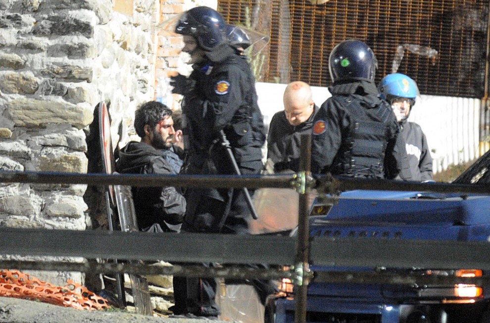 Una violenza preordinata quella delle forze dell’ordine, che caricano con la celere i No Tav ancora distanti dalle reti e completamente a freddo. Lo fanno all’interno di un sentiero di montagna strettissimo e pericoloso dove la gente cade, viene calpestata e poi ferita, ripetutamente, dai manganelli di ordinanza e inseguita addirittura nei boschi (già affumicati dai fumi illegali sparati dalla polizia). Da segnalare all’interno del cantiere la presenza dei due mastini della procura che hanno l’ossessione dei No Tav, Padalino e Rinaudo, erano li per caso oppure già sapevano che avrebbero fatto degli arresti?