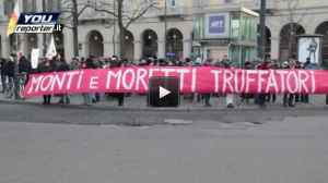 Ancora una testimonianza video della giornata di contestazione a MOnti e a Moretti. Cariche selvagge per le vie di Torino, fermi, e violenza gratuita su manifestanti e passanti. Questa la campagnia elettorale del premier uscente Monti, questa la via dell’alya velocità dell’ad trenitalia Moretti. A sarà dura!