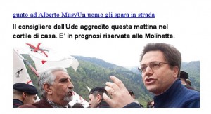 Pubblichiamo qui una parziale foto web dell’apertura mattutina del sito online LaStampa.it inviataci da un nostro lettore che purtroppo è riuscito a fare un salvataggio solo parziale della schermata allucinante che si è ritrovato sul monitor. Notizia del giorno è l’aggressione a Musy, ex candidato sindaco di Torino alle scorse elezioni vinte dal deputato pd Fassino. In questa foto appare Musy durante la sua campagna elettorale, nella giornata in cui aveva scelto la val di Susa per dichiarare la sua posizione di sostegno al progetto tav Torino Lione (non che gli altri candidati avessero posizioni differenti, escluso Bertola del movimento 5 stelle anche lui presente in quella giornata a dire il contrario e Juri Bossutto della federazione della sinistra). Insime a Musy nella foto appare anche Alberto Perino che in un momento di dibattito con una bandiera no tav in spalla risponde al candidato. In un mondo fatto di immagini e messaggi veloci aprire la testata di informazione con questa immagine associandola al titolo in cui si descrive l’aggressione possiamo definirla un’associazione faziosa e fuorviante . Un messaggio fin troppo chiaro per lasciare spazio a dei dubbi, ferito, aggressione, no tav. Non possiamo che notare come ormai sia in atto una azione totale di delegittimazione e distorsione dell’immagine del movimento no tav. Dove non arrivano le ruspe, dove non arrivano le compensazioni o le manette ci prova l’informazione-casta mainstream. Poco conta il fatto in sè, molto conta invece il ricavato in interesse economico o spostamento di opinione che l’editore o il gruppo di pressione economica richiedono. Insomma tutto fa brodo o tutto è buono per dire che tanto è colpa dei no tav.