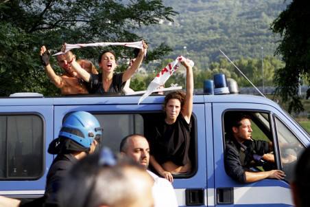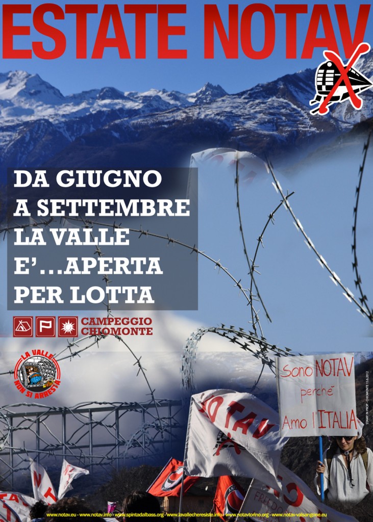 Una breve sintesi degli eventi estivi: finisce la primavera e inizia l’estate di lotta no tav, primi dibattiti, assemblee, i giovani notav prendono l’iniziativa e per il secondo anno di fila si apre con il campeggio studentesco. Sono giorni veloci, passeggiate al cantiere, blocchi alle ditte coinvolte negli appalti tav (vedi link gita all’Itinera studenti no tav) e subito volano le denunce e i fogli di via (per la prima volta anche ai valsusini da comuni valsusini rendendo un più complicata la vita di tutti). Inizia dunque la fase di luglio e subito il cantiere minacciato dalle mobilitazioni alza le fortificazioni. Il 19 luglio il picco di lotta con la passeggiata notturna che porta una notte di scontri tra no tav e forze di polizia. Bilancio finale nove fermi poi divenuti sette arresti, oltre 63 feriti e la vergognosa e infame vicenda di Marta Camposano fatta oggetto di abusi sessuali durante il fermo nel cantiere tav ad opera delle forze di polizia sotto gli occhi dei due pm Padalino e Rinaudo presenti in loco. Subito dopo arrivano ancora le accuse di terrorismo e la perquisizione della Credenza storico punto politico e di aggregazione di Bussoleno. Infine ad agosto, colpendo in contemporanea con le perquisizioni arriva la talpa, a pezzi, di notte, mimetizzata in trasporti eccezzionali ma nenache troppo. L’iniziativa no tav in questa fase consiste nel provare con blocchi a sorpresa, reperendo con difficoltà le infomazioni a intercettare i convogli. Sono nuovamente fermi, foglia di via e arresti (vedi link blocco arresti e fermi a Chianocco). Continua poi ad agosto il campeggio no tav con la ripresa delle attività a Chiomonte e il programma che via via sta proseguendo con le battute finali, valsusa l’università delle lotte (vedi link programma) a cura degli studenti universitari e poi ancora un ultimo fine settimana con un altro appuntamento orgaizzato dagli studenti no tav degli istituti superiori.