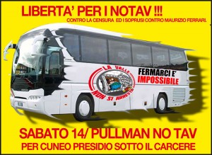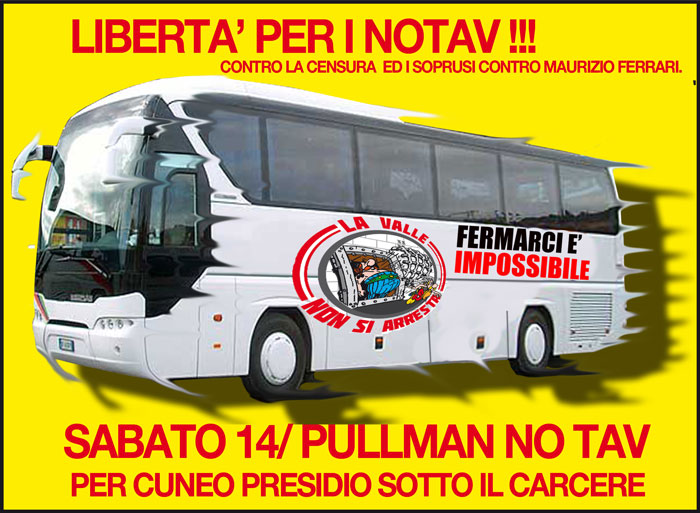 sabato 14 luglio pullman no tav per recarsi al presidio sotto il carcere di cuneo contro la censura ed i soprusi contro maurizio ferrari.