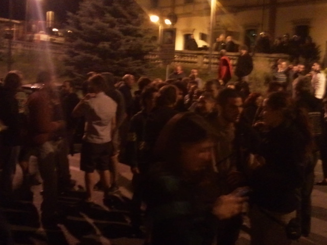 Terminato il coordinamento dei comitati al campeggio notav in circa duecento ci siamo spostati alla stazione di Bussoleno in treno e con le macchine e lo scenario che ci si è presentato è stato allucinanete: decine di mezzi delle forze dell’ordine, centinaia di agenti in assetto antisommossa e decine di luci blu a squarciare il cielo della notte in Valle, nervosi e pronti a tutto.