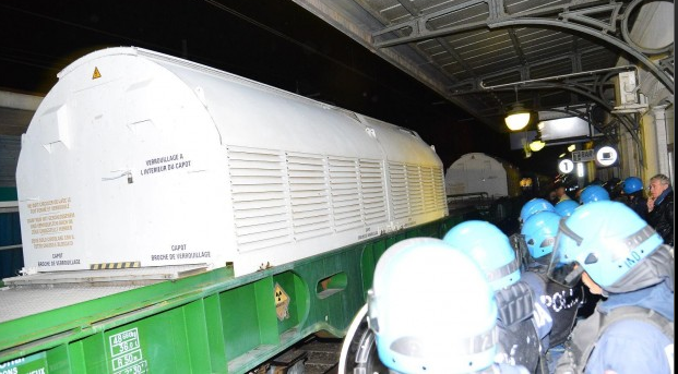 La Valle completamente militarizzata questa notte non solo per il Tav come purtroppo siamo abituati, ma per il passagio di un treno nucleare contenente le scorie che da Saluggia vengono portate a Le Hague, nel Nord-Est della Francia, dove vengono riprocessate. Un passaggio pericoloso per la salute degli abitanti nel cuore del Piemonte, che senza saperlo si trovano un carico nucleare sfrecciare vicino alle proprie case. La pericolosità di questi treni è documentata da tempo ma per la Democrazia a cui tanto si appellano i vari Bersani, tutto passa in secondo piano ed è più importante il viaggio della morte piuttosto che la sicurezza dei cittadini. Avevamo deciso di manifestare alla stazione di Bussoleno per rendere pubblico questo fato gravissimo visto che nemmeno i sindaci dei comuni interessati al passaggio lo sapevano, in barba alle più elementari norme di sicurezza e prassi istituzionali.