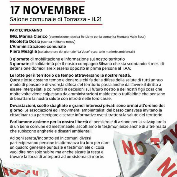 Torrazza 17 nov tav cave e solidarietà a Silvano!
