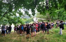 Infine a seguito della chiusura dell’assemblea ci si è mossi verso il cancello che impedisce l’accesso alla Clarea per una passeggiata a sorpresa. Giunti allo sbarramento è iniziata una battitura, dei cori e si sono tagliati alcuni tratti di concertina. La polizia ha quasi immediatamente iniziato un massiccio lancio di lacrimogeni nei confronti dei No Tav.